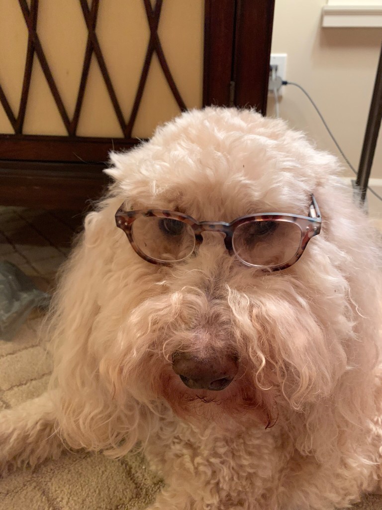 I’m Lucy the doodle. Others may be unhappy with our new reality, but it’s actually working great for me. You’re all here all the time. That means lots of pets, lots of treats. I don’t get left alone when you go to work or school. Plus, walks! Lots of walks. Everyone takes me out. I’m rather tired actually. But in a good way. Even though you are going stir-crazy, I’m happy. Maybe you’ll get used to it and we can keep it up! Woof!